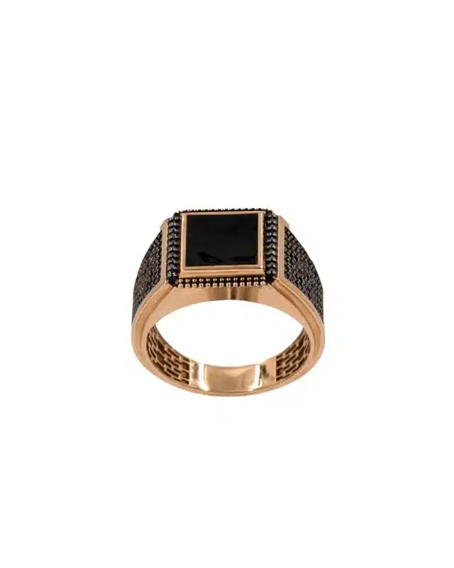 Oniks taşı ve siyah taş işlemeli, 9.32 gram ağırlığında zarif erkek yüzük. Şıklığı ve güçlü duruşu bir arada sunuyor. Bu yüzük, özel günlerde hediye olarak tercih edilebileceği gibi, günlük kullanımda da stilinizi tamamlar.